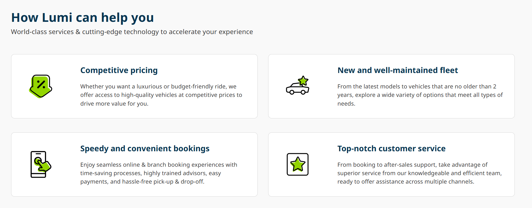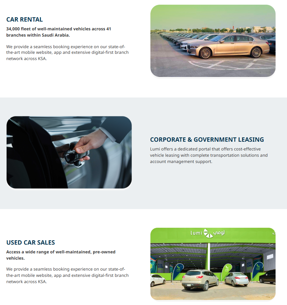 Lumi website (car rental) Planning, content and structure App store screens (Almosafer Hosts) Destination management social media